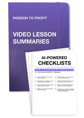 That’s why we created this exclusive bonus. You’ll get AI-powered summaries for every single lesson in Passion to Profit. Plus step-by-step checklists that tell you exactly what to do, in what order, so you always know your next move.